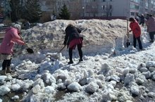 Часть коллектива школы приняла участие в очистке от снега и мусора территории у памятника воинам-интернационалистам.