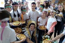 Переодевшись и сделав специальный грим, наши “ иностранные граждане” встречали ребятишек, а так же учителей тематическими песнями на английском языке и рассказами об этом знаменательном дне во всей Европе! Нужно отдать должное, что ребята не просто вели рассказ, они вживались в роли тех самых «странствующих пилигримов» и достаточно артистично справлялись со своей задачей! Огромное впечатление наши «интуристы» произвели на ребятишек начальной школы.