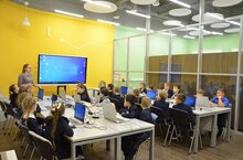 Ученики 1А класса посетили первое занятие в Доме Научной Коллабарации. Одна группа создавала проект "Буквы", другая собирала робота.