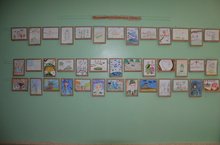 Рәсем укытучысы Кузнецова А. А. мәктәптә Бөек Җиңүгә багышланган рәсемнәр күргәзмәсе оештырды.