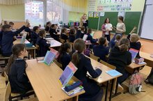 Ученицы 7а класса провели "Час занимательного русского языка" с учениками начальных классов. Дети были разделены на команды, отгадывали ребусы и загадки о русском языке, участвовали в творческих конкурсах.