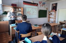 8 нче а сыйныфында милләтчелеккә каршы көрәшкә багышланган батырлык дәресе узды. Балалар алдында танылган алабугалы, Анастасия Талапина бабасы,Талапин А. Н.чыгыш ясады. Очрашу балаларга ошады, алар үткән һәм хәзерге геройларга карата тирән ихтирам хисләре белән калдылар.