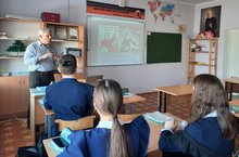 В 8а классе прошёл урок Мужества, посвящённый борьбе с нацизмом. Перед ребятами выступил знаменитый елабужанин, дедушка Анастасии Талапиной,Талапин А.Н. с рассказом о героях ветеранах нашего края. Встреча понравилась ребятам, они остались с чувством глубокого уважения к героям прошлого и настоящего.