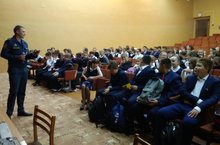 Балалар куркынычсызлыгы айлыгы кысаларында 7 сыйныф укучылары МЧС хезмәткәре А.И.Юдин һәм ГИБДД хезмәткәре А.Р. Новохатько белән очраштылар.