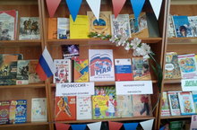 В школьной библиотеке открылась тематическая книжная выставка посвящённая празднованию 1 Мая «Мир, труд, май»