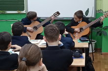 В 4а классе состоялся музыкальный вечер. Преподаватель ДМШ №1 Валитова Людмила Павловна вместе со своими воспитанниками подготовили разнообразную вокально-инструментальную программу, исполнили на гитарах и спели следующие произведения: испанский вальс «Каркасси», песня цыганочка, «Баркарола» Наполеона Коста, «Вальс осенних листьев», песня «Полюшко-поле» и многое другое. Данное мероприятие состоялось по инициативе классного руководителя 4а класса Колиевой Фариды Муллахаметовны.