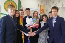 «Кайгырту» акциясе кысаларында 9нчы мәктәп волонтерлары рәсем дәресләрендә (укытучысы Родионова Е. П.) бәйрәм котлау плакатлары ясадылар, аннары аларны йортларның подъездларына элделәр.