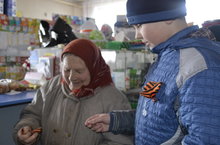 В рамках республиканской акции "Весенняя неделя добра - 2015" сегодня в школе проходит акция по распространению акции "Георгиевская ленточка". Участники антинаркотического проекта "SaMoSтоятельные дети" подарили символ Победы случайным прохожим, работникам ФАПа. Учащиеся друг другу помогали прикалывать Георгиевскую леточку на грудь.