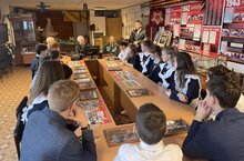 Сегодня для обучающихся 7, 9 классов в школьном краеведческом музее, в рамках празднования 77-летия Победы в Великой Отечественной войне, состоялся Урок Мужества при активном участии лекторской группы Совета ветеранов Елабужского муниципального района в лице Трофимова И.И. и Красильникова М.М. Открыл урок мужества председатель Совета ветеранов Баганов Г.П. Иван Иванович Трофимов с учащимися обсудили ситуацию, сложившуюся сегодня на Украине, побеседовали о подвиге военнослужащих, выполняющих свой долг по защите интересов нашего Отечества и осуществляющих оборону мирных граждан Донбасса. Михаил Михайлович рассказал о себе: о нелегком послевоенном детстве, о службе в вооруженных силах СССР, об учебе в Новосибирской школе милиции, о своей интересной и непростой службе в Отделе по борьбе с хищениями социалистической собственности и ОВД Г. Елабуги, а в завершении исполнил «Марш артиллеристов».