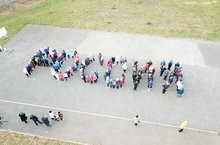 В преддверии Дня народного единства учащиеся нашей школы приняли активное участие в песенном флешмобе. 120 ребят составили слово «Россия» и исполнили гимн Российской Федерации.