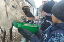 Учащиеся 1 А класса ОШ «Университетская» ЕИ КФУ , обьединения "НТКД" (рук. Лобина Т.М.) посетили оленью ферму-это замечательный экопарк. В центре готовят спектакли, тематические мероприятия. Нам провели экскурсию, рассказали про оленей и хасок. Здесь свежий воздух, ощущение деревенской жизни в дали от города и суеты, свежий воздух, милые и добрые животные, с которыми можно пообщаться и погладить. После прогулки нас напоили горячим чаем с печеньем. Дети были в восторге!