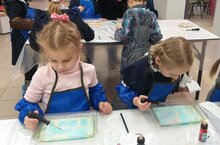 Учащиеся 1А класса ОШ «Университетская» в музее современного этноискусства познакомились с интересной техникой живописи, которая называется эбру. Эбру — это «живое» искусство, танец разноцветных капель, соединяющихся в неповторимые узоры. Художник стряхивает на «водный холст» капли краски, которые начинают менять очертания, двигаться, причудливо смешиваясь между собой. Не каждый человек умеет хорошо рисовать, а здесь не надо родиться великим художником, чтобы создавать шедевры.