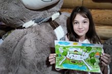 На рисунке Карина изобразила - парк с интерактивным экраном, где дети спомощью кнопок могут получить интересную информацию, например видеосюжет об обитателях (животных) проживающих в наших краях.