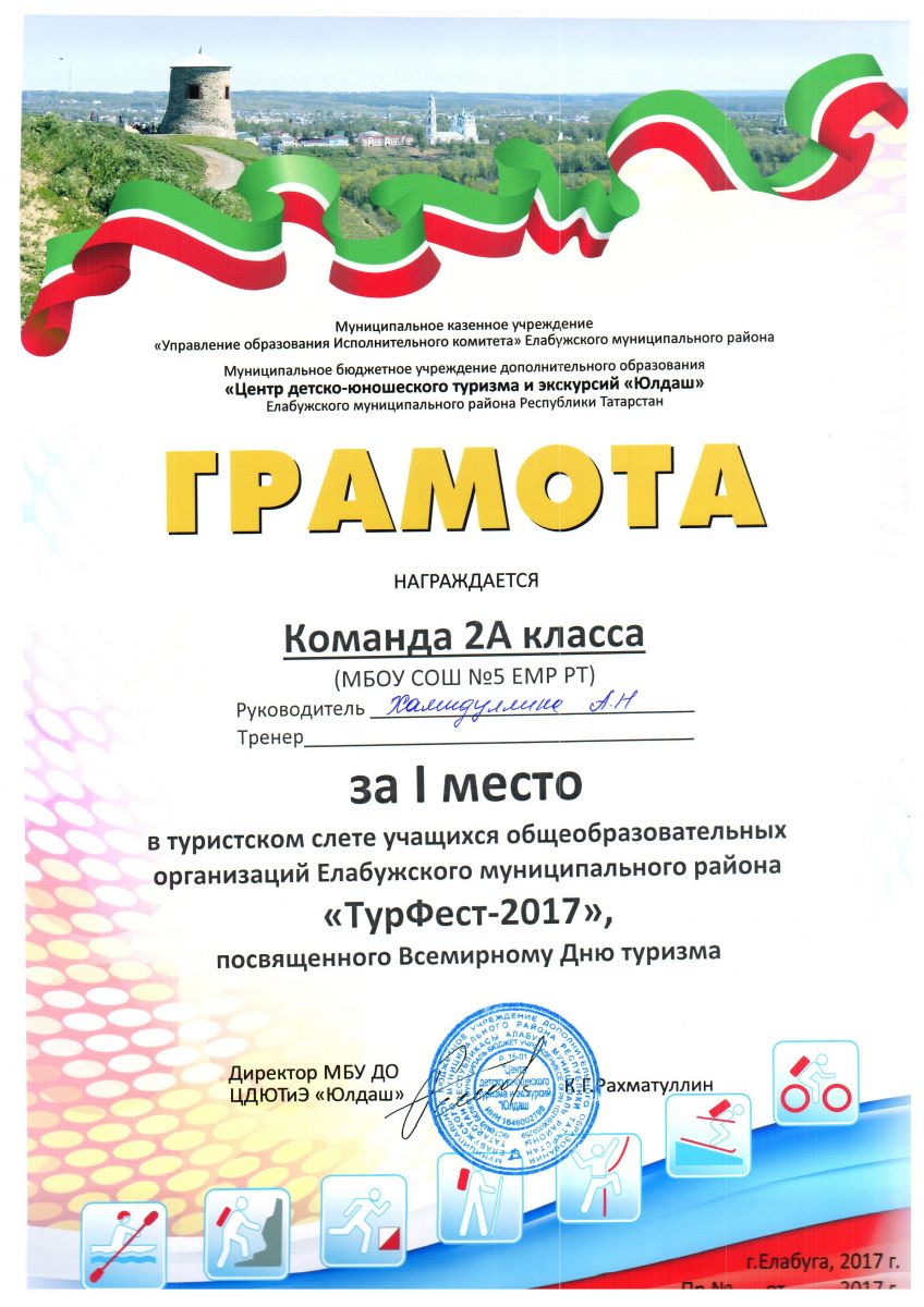 Грамота за 1 место ТурФест-2017 2А класс, 5 школа .jpg