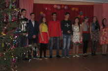 Учащиеся 8 - 11 классов праздновали новый год "Голубой огонёк". Они были в костюмах моды 70 -х, 80 - х, 90 - х годов.