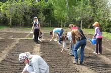 Бакчада кызу эш бара. Укучылар бакчада төрле яшелчәләр утырттылар.