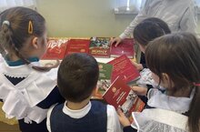 В сельской библиотеке ученики начальных классов провели обзор выставки книг, посвященный 80-летию Победы в ВОВ «Память о войне нам книги оставляют»
