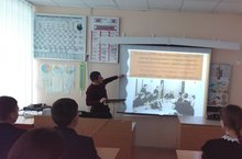 В рамках проведения месячника гражданско-патриотческого воспитания, посвященого Дню защитника Отчества, в школе проводятся классные часы. Общешкольный классный час провел учитель ОБЖ на тему: "Оружие Победы"
