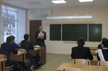 В школе была проведена встреча. Были представители из района. Они провели с учащимися инструктаж. Сотрудник ГИБДД ознакомил учащихся правилами поведения на дороге, в автобусе.