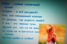 С этими словами начались беседы в школе. В рамках бесед классные руководители говорили с учащимися о толерантном отношении к инвалидам и лицам с ограниченными возможностями здоровья. Дети вместе с учителями слушали притчи, песни, выполняли творческие работы. Но главное – думали, размышляли о том, что доброту можно дарить по разному, говорили о добрых словах и мыслях, вспоминали пословицы и поговорки со словом «Доброта».