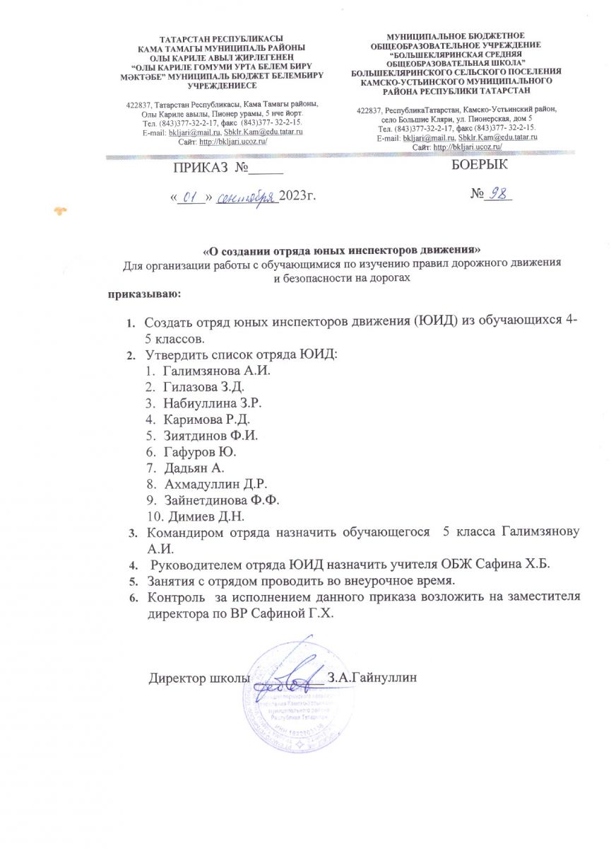 Муниципальное бюджетное общеобразовательное учреждение «Большекляринская средняя общеобразовательная школа» Камско-Устьинского муниципального района Республики Татарстан / Татарстан Республикасы Кама Тамагы муниципаль районы Олы Кариле авылы "Олы Кариле урта гомуми белем бирү мәктәбе" гомуми белем бирү муниципаль бюджет учреждениесе