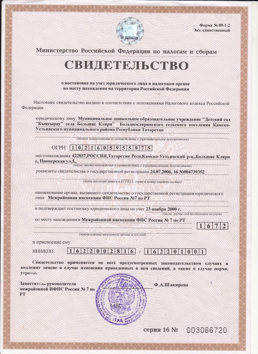 Короткое название: | МБДОУ "Детский сад "Кынгырау" села Большие Кляри" |