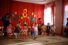 Сегодня в нашем детском саду начались утренники к 8 марту. Первыми поздравили мам детишки 1 младших групп. Воспитатели Семёнова Р.Н., Залялова Ж.С., муз.руководители Зарипова Ф.Х., Биккинина Р.Р. научили ребят петь, плясать, играть, некоторые рассказывали и стихи. Пришедшие в гости волк и Красная шапочка не напугали детей, ребята играли с ними и радовались!