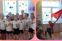 Дети старшей "А" группы (семья Гимадиева Искандера, Шереметьевой Дарьи, Якимовой Вероники, Тухфатуллина Самата, Мокшина Радмира, Гизятова Райяна) открыли акцию "Георгиевская ленточка" -