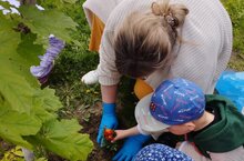 Воспитанники средней Б группы вместе с воспитателем Ерановой Ф.В. высадили цветы на своём участке. Теперь ребята будут ухаживать за растениями и наблюдать за их ростом. -