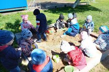 "Самая лучшая игрушка для малыша - куча песка!" К.Д.Ушинский. Малыши-крепыши 1 младшей группы на прогулке. Они очень любят играть в песочнице: кто-то катает машинку, кто -то делает куличик, а кто-то лепит пирожок. Игры с песком стимулируют руку малыша. Никакие пальчиковые игры не заменят многообразия движений. Трогая руками песок ребенок развивает мелкую моторику, воображение и фантазию.