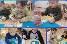 Первая младшая группа. Аппликация "Снеговик". Сегодня наши малыши учились создавать картинку из ватных дисков. Повторили как правильно держать кисточку. Закрепили у ребят представление о зиме. Воспитатель Курчаева Р.В.