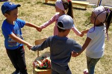 Сегодня у нас День народных игр. Дети собрались на одной из площадок детского сада и все вместе играли в любимые народные игры: "Утыр, утыр Мәликә", "Түбәтәй", "Юрта", "Горелки", "Золотые ворота" и др.