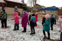 В старших и подготовительных группах проходит физкультура на прогулке при хорошей погоде. Детки, под руководством воспитателя по физической культуре Муталиповой Э.С., охотно занимаются физкультурой, соревнуются.