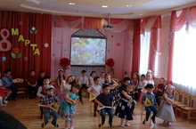 Прошел утренник в средней группе Б - дети поздравили мам красивыми стихами, песнями, вместе с ними играли и веселились.
