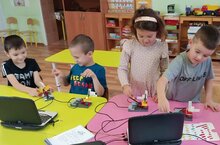 Знакомство с элементом модели зубчатые колеса, понятиями ведущего и ведомого зубчатых колес. Изучение видов соединения мотора и зубчатых колес. Знакомство и исследование элементов модели промежуточное зубчатое колесо, понижающая зубчатая передача и повышающая зубчатая передача, их сравнение, заполнение таблицы. Разработка модели «Кораблик» с подготовительной Б группой ( учитель- логопед Хасанова Г.И.)