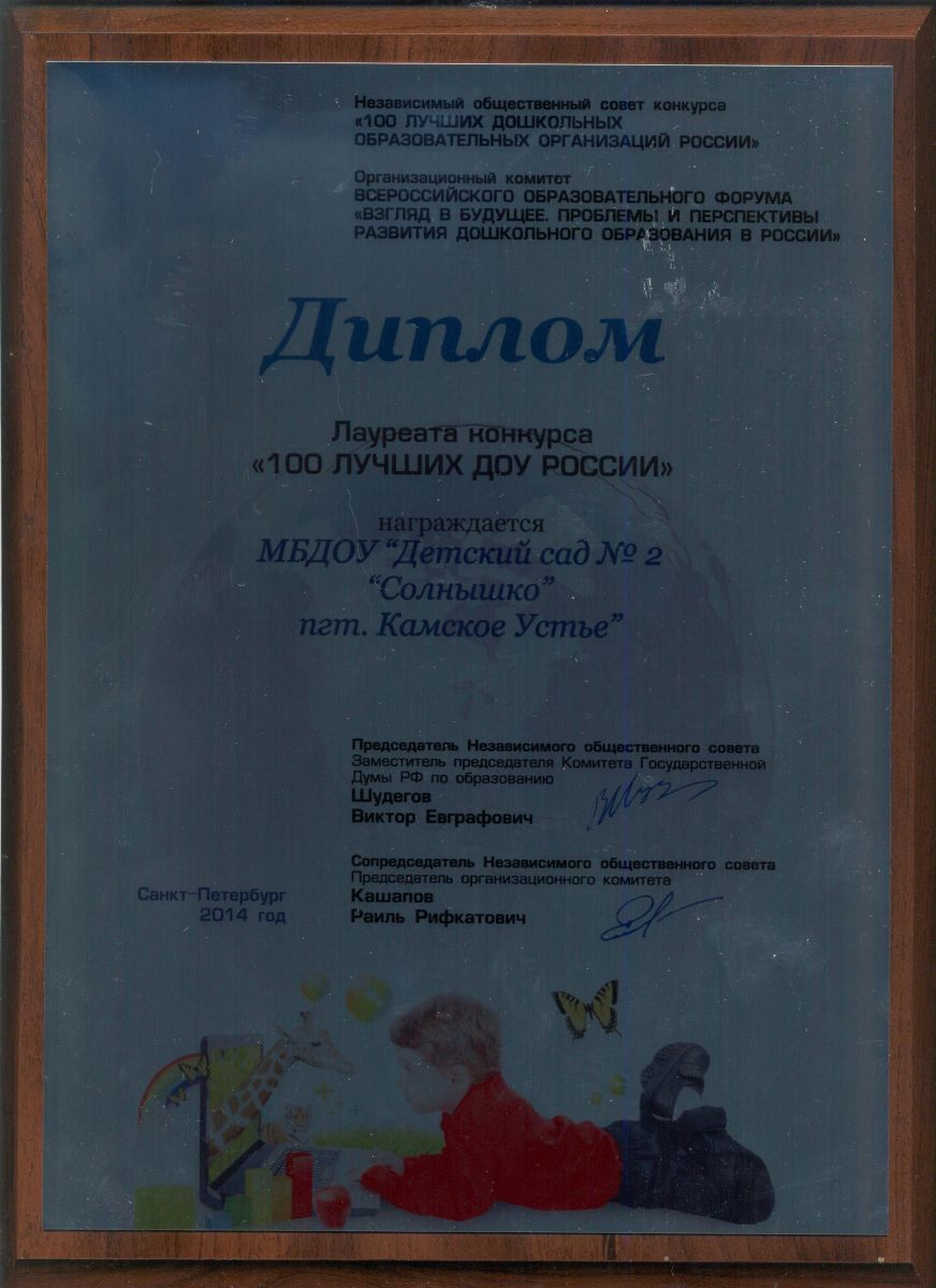 Диплом Лауреата конкурса "100 лучших ДОУ России"