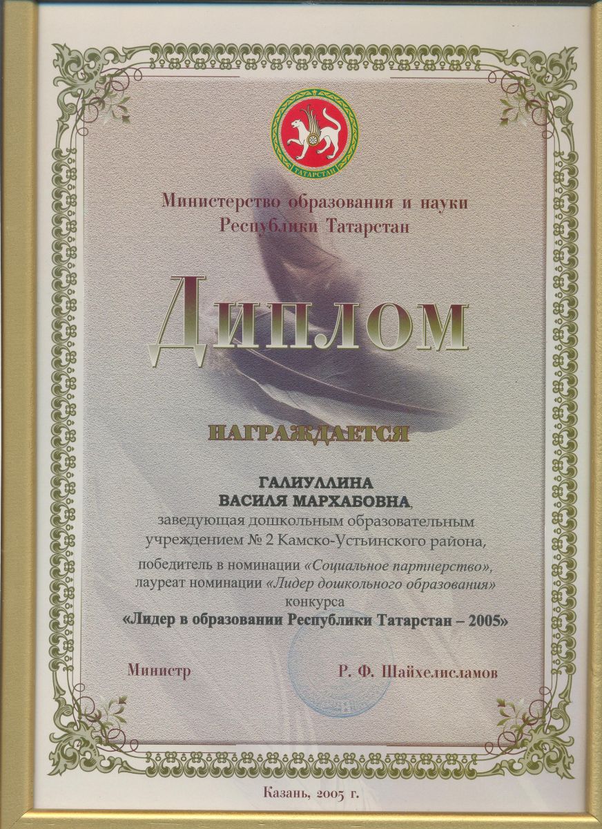 Диплом "Лидер в образовании Республики Татарстан - 2005"