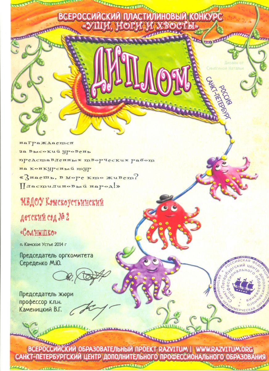 Диплом Всероссийского пластилинового конкурса "Уши, ноги и хвосты"