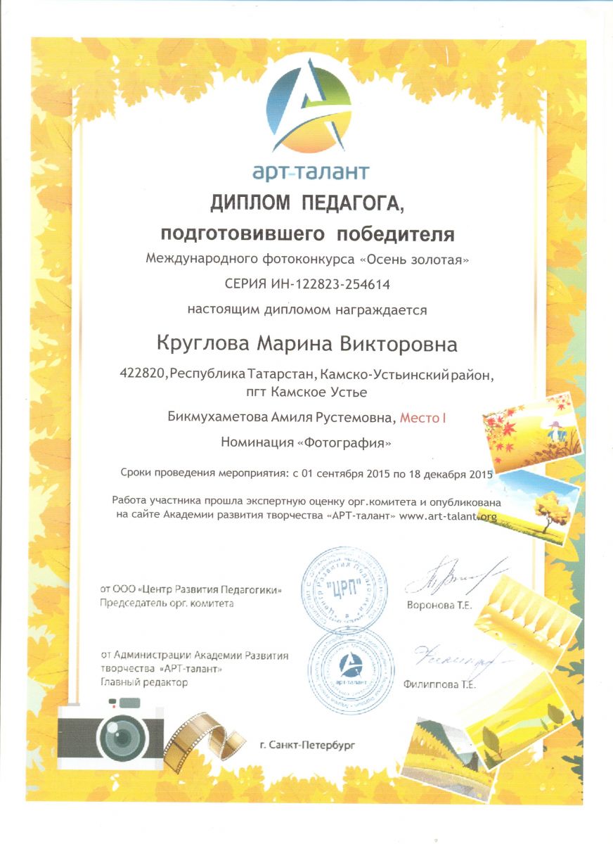 Диплом за 1 место в международной фотоконкурсе "Осень золотая"