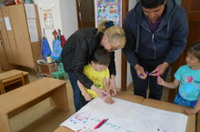 С средней проходит акция "Наша дружная семья". Сегодня воспитанники сделали плакат вместе с родителями "Объединим семью".
