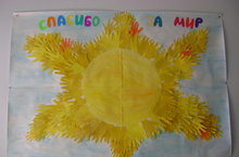 Воспитатели и воспитанники сделали коллективную работу ко Дню Победы. Эта работа выставлена в ДК им. Столярова, где проходило мероприятие поселка к 70-летию Победы. Дети своими ладошками благодарили ветеранов за Победу, за мирное небо над гоовой.