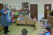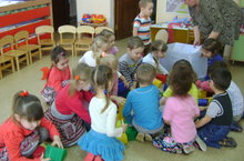 Сегодня малыши первой младшей группы работали с тестом. К ним в гости пришла апа (воспитатель Симанова А.П.) Она научила их делать из теста пряники. Затем танцевали под татарскую мелодию. Дети называли цвета, как их зовут на русском и татарском языке. оформлен национальный уголок. Красочная информация для родителей на двух государственных языках.