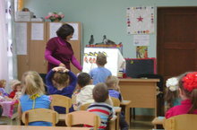 Началась неделя взаимопосещений. Прошло занятие в подготовительнойй группе ( воспитатель Евстропова С.Ю.) "Обучение грамоте". Дети повторяли и закрепляли гласные и согласные звуки. Развивали фонетический слух. Основным в занятии было знакомство с согласной буквой "М". Родителям и воспитателям очень понравилось.