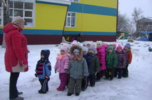 Всё кругом белым бело. Малыши 2-рой младшей группы готовятся к экскурсии по территории детского сада. Очень хочется посмотреть как спят деревья и чем питаются птицы.