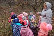 Воспитанники младшей группы в гости к яблоням сходили,