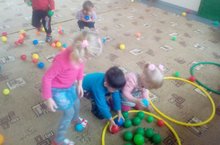 Физическая культура во второй младшей группе сегодня была "разноцветной". Задание получено, найли зеленый шарик и попади им в обруч! Если неправильно сделал, исправь! Молодцы!