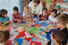 - Для аппликации детям нужно давать ножницы, клей, кисть из жесткой щетины или клей-карандаш, мягкая тряпочка и небольшая клеенка.