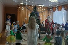 Вогспитанники средней шруппы отправились в гости к Деду Морозу. Веселили Петрушки, обдували Снежинки, дорогу показывали Заичишки и Лиса! Поездка на новогоднем паровозике была увлекательной для всех.