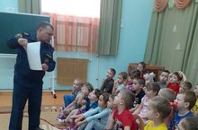 Старший госинспектор ГИМС Г.Нуриев провел для подготовительных групп беседу "Будь внимателен на льду".Целью акции было познакомить детей с правилами поведения на воде и на льду во избежание несчастных случаев.
