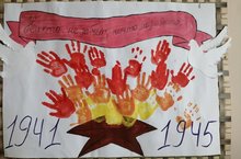 Тематическая беседа проведена в средней группе о Дне Победы. Ребята нарисовали свой вечный огонь, с помощью своих ладошек!